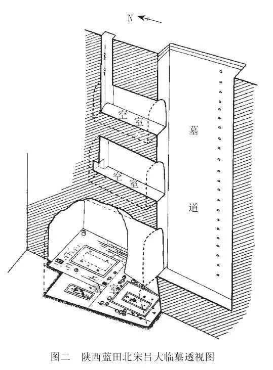 还有一种企图保全墓葬的方法,就是设置假墓室。例如在陕西蓝田五里头村发掘清理了29座北宋吕氏家族墓,均为竖井墓道土洞墓,其中有3座墓葬(2号吕大临墓、12号吕大圭墓、20号吕大忠墓)在墓室上部纵向叠置了1至2个空墓室,其用意当是为了防盗。尤其是2号墓设置了上下两个空墓室(图二),确曾有效预防了一次盗掘行为。