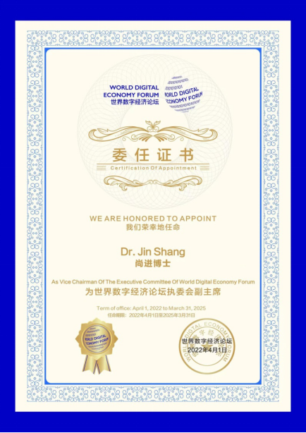 此外,为进一步畅通对接渠道、加强合作交流,世界数字经济论坛特别聘请尚进社长担任世界数字经济论坛执委会副主席,重点负责智库建设,并组织专家为论坛相关产业园区提供咨询规划服务。