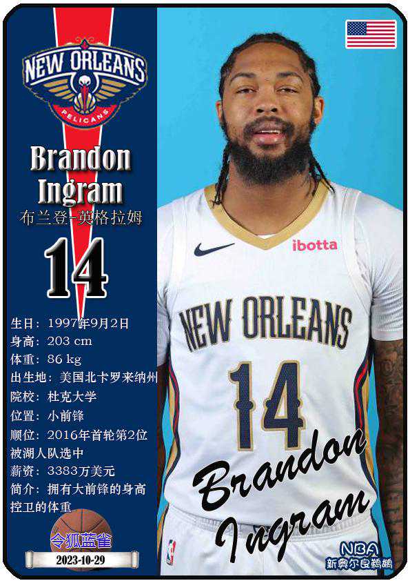 27、布兰登-英格拉姆(鹈鹕)
