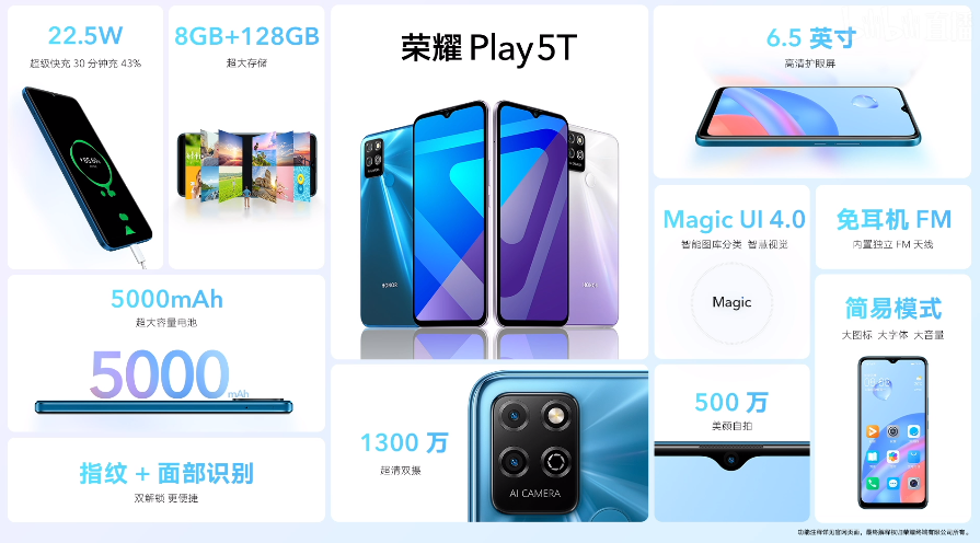 发布会中还发布了一款价格跟定位更低的产品:荣耀Play5T!