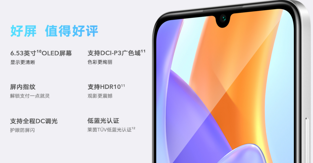 在屏幕正面,还是采用了Play系列祖传的“水滴屏”设计,搭配6.53英寸1080POLED屏幕,60Hz低刷。