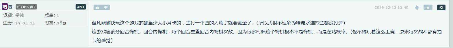 确实做出了差异化,但差异化的部分感觉就是对玩家PUA得更狠了,希望能够筛选出更加抗压,更加能够从战棋的高压挑战性里收获成就感收获快乐的一批用户。