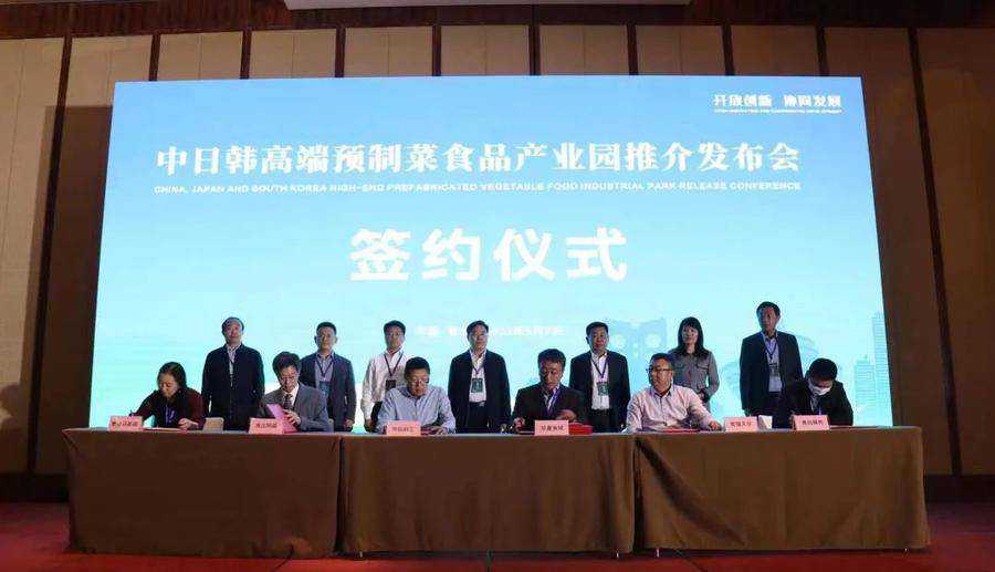 在现场领导、嘉宾以及媒体的共同见证下,黑猫天华(深圳)智慧冷链科技有限公司、华际科工(北京)卫星通信科技有限公司、浙江网盛生意宝股份有限公司、青岛耀栋食品有限公司、青岛日昇昌食品配料有限公司分别与中日韩高端食品预制菜产业园进行战略合作签约。