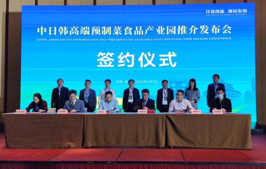 美好五月,繁花似锦。为切实做好预制菜品牌建设,全力推动中日韩高端预制菜食品产业园建设步伐。5月7日,由潍坊市食品协会、安丘市人民政府主办,中日韩高端预制菜食品产业园建设指挥部承办,以“开放创新,协同发展”为主旨的中日韩高端预制菜食品产业园推介发布会在青岛隆重举办。