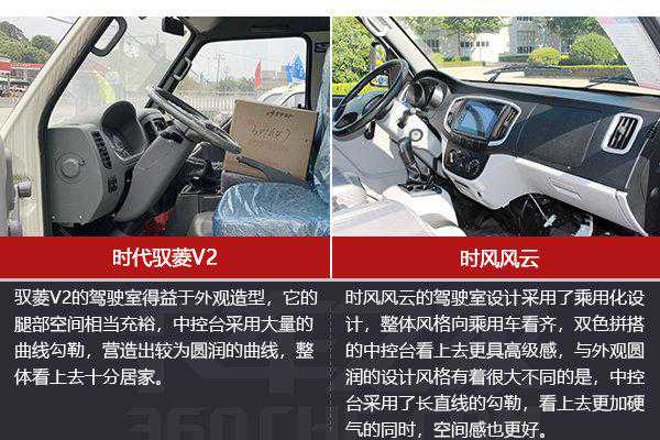 从驾驶室的配置上可以看出,时风风云虽然售价更高,但在驾驶舱的配置上更舍得下本钱,乘用化的驾驶舱设计给人更好地观感,上手相对容易。而驭菱V2的内饰则倾向以于够用为主,整体配置稍逊一筹,但比较一下两者的售价,这样的差距也不是很难以接受。