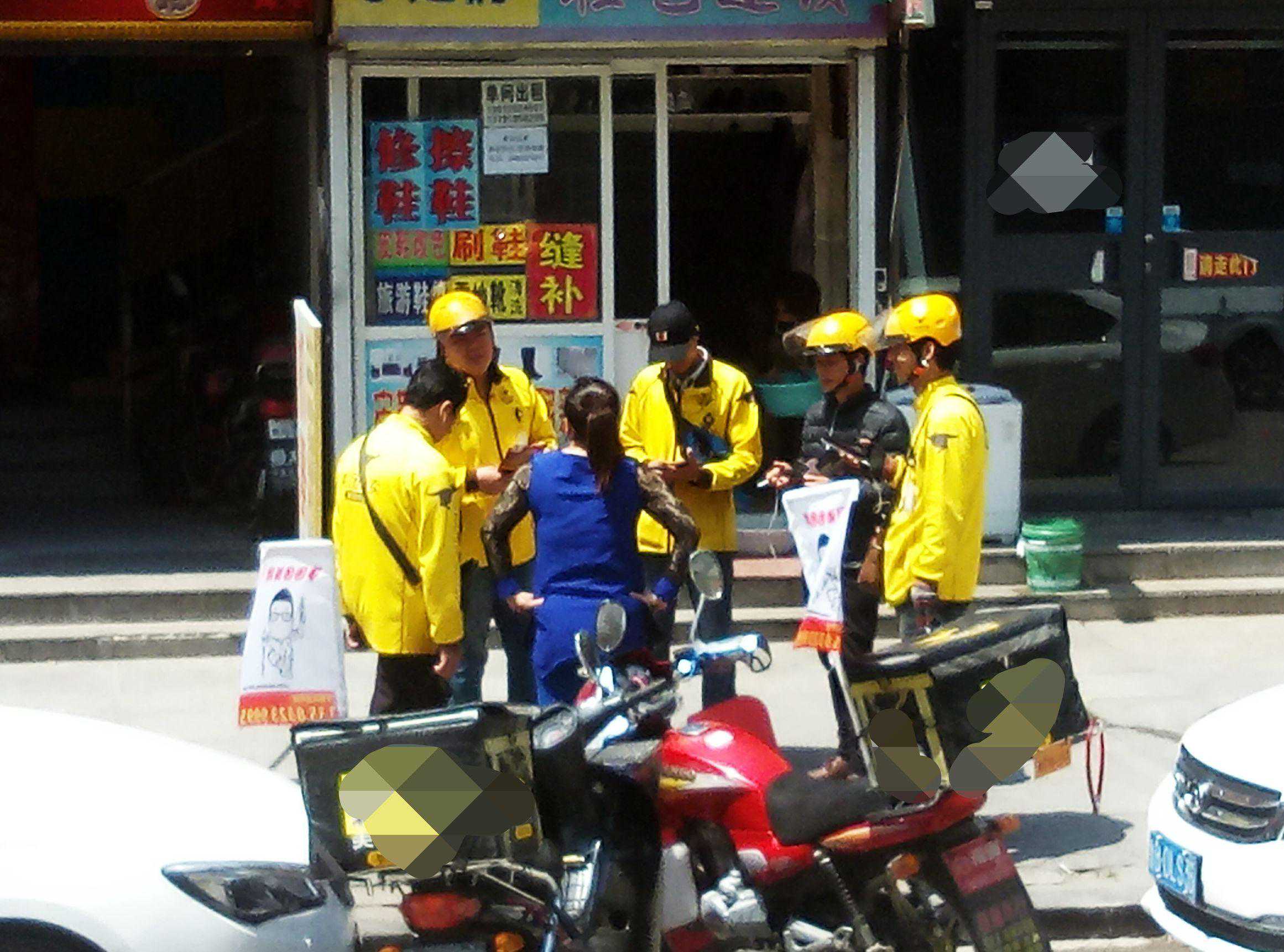 小编也用图像记录下了外卖小哥的工作日常。这是专职配送员早上领导在给他们开会。他们的服装必须保持统一整洁,佩戴安全头盔。