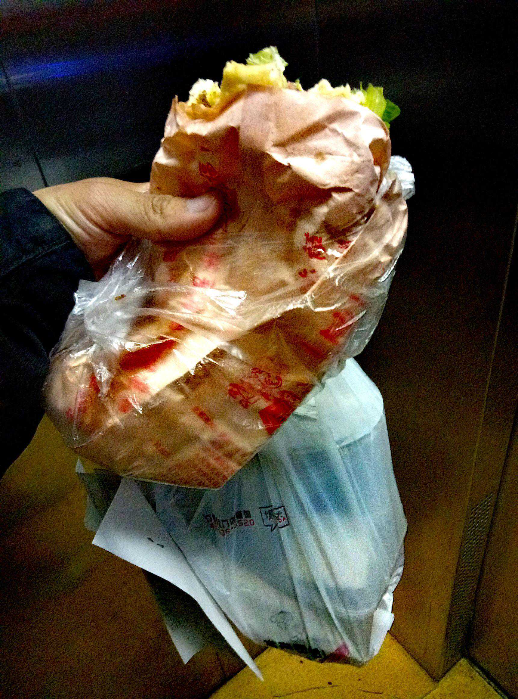 午餐时间别人吃饭的时间,外卖骑手根本顾不上吃饭,有时候一忙几个小时早就饿过劲了。这位骑手利用取餐的时间在附近买了个烧饼花了6元钱。利用上楼走路时间,边走边吃。