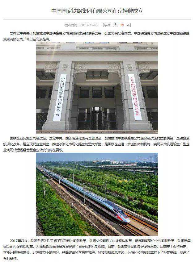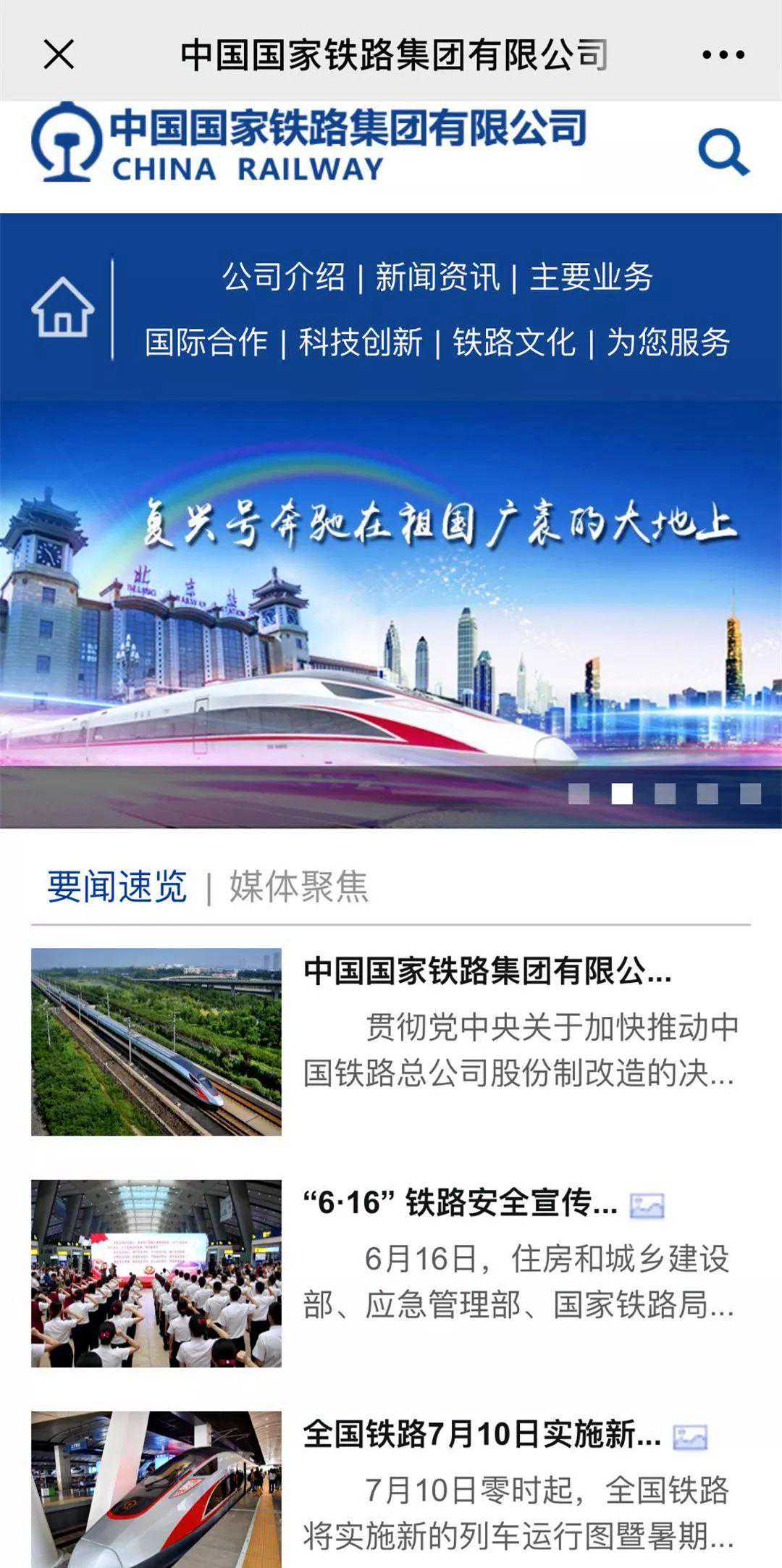 2019年6月18日,中国铁路总公司改制成立中国国家铁路集团有限公司。公司互联网门户网站同步改版上线运行,网址为。网站支持中文简体、中文繁体浏览,同时开通英文版和手机版网站。
