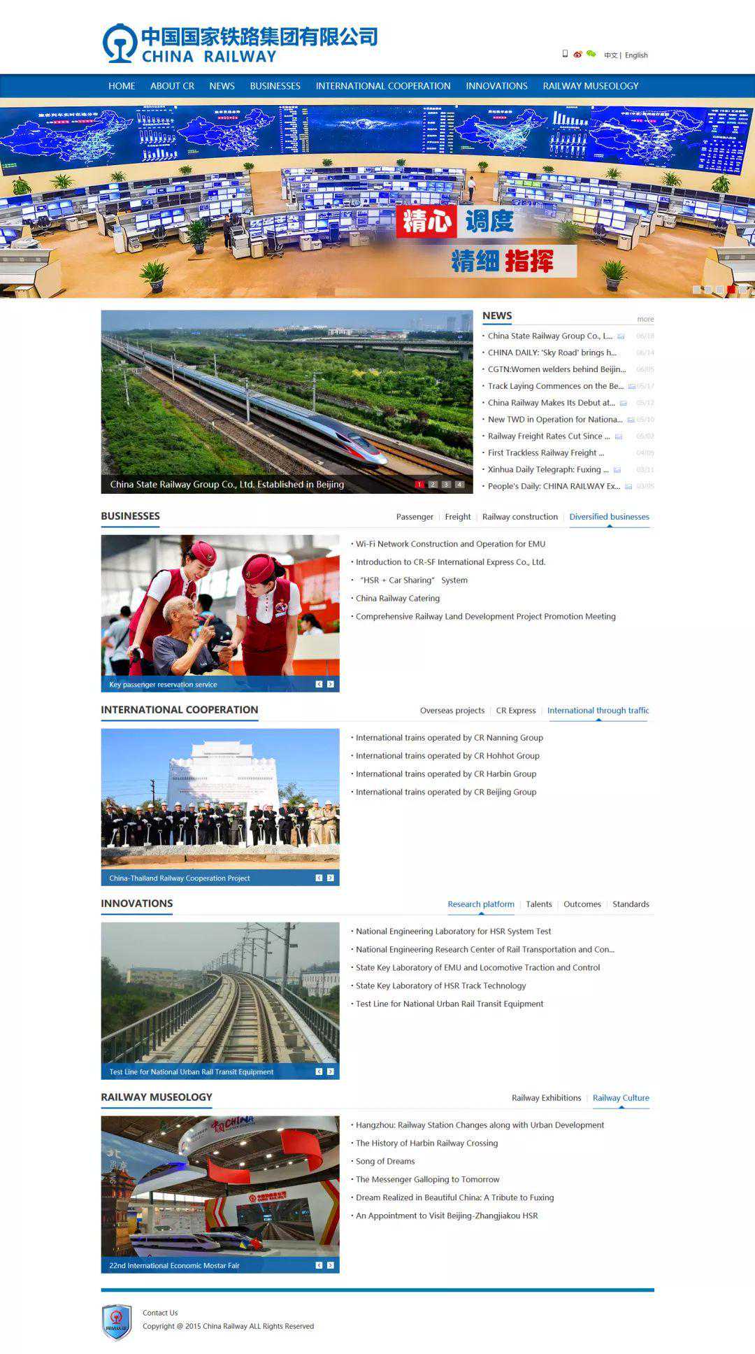 网站设有“公司介绍、新闻资讯、运输经营、国际合作、科技创新、铁路文化、为您服务”七个一级栏目和“公司简介、要闻速览、旅客运输、货物运输、铁路建设、中欧班列运输、科研平台、铁路榜样”等37个二级栏目,并设公众信箱。