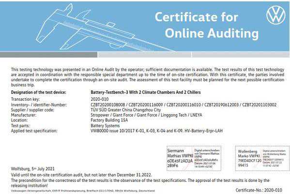 TUV南德常州新能源实验室获德国大众认可实验室之一