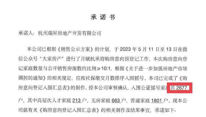 刚刚,奥体红盘月赋杭承府报名登记结果正式公布。限价4.6万/㎡,一把梭哈220套房源,入围公证摇号家庭2677户,综合中签率8.2%,需5年限售。
