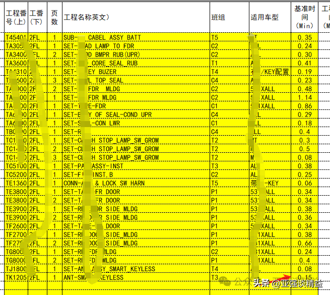 当然,此企业有一套完整的标准资料法规则,理论人员的计算是按照此方法计算,秒表法测量只是现场的改善应用。