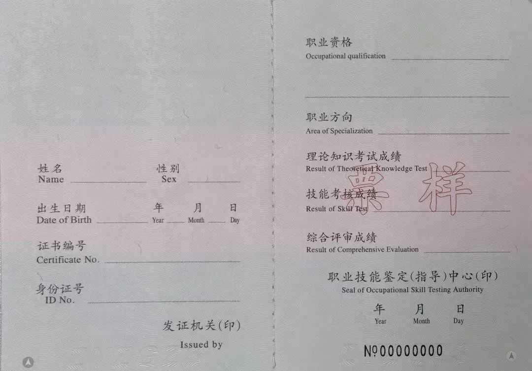 职业资格证书的样书