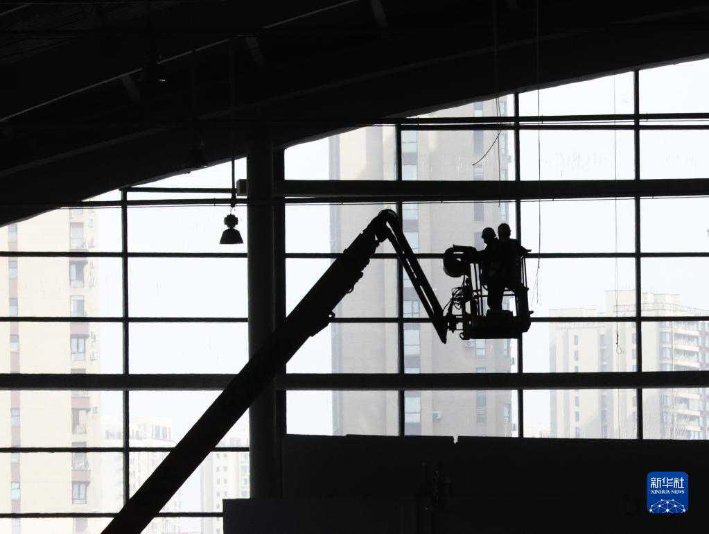 3月22日,沈阳国际展览中心,施工工人加紧建设健康驿站。沈阳市积极应对严峻复杂的疫情形势,按照市防控指挥部总体工作部署,从3月20日晚开始,在沈阳国际展览中心建设方舱医院应急工程和健康驿站工程,提前准备必要的临时救治场所。多家施工单位紧密配合,倾力打造高质量临时救治工程,助力沈阳打赢抗疫保卫战。新华社记者杨青摄