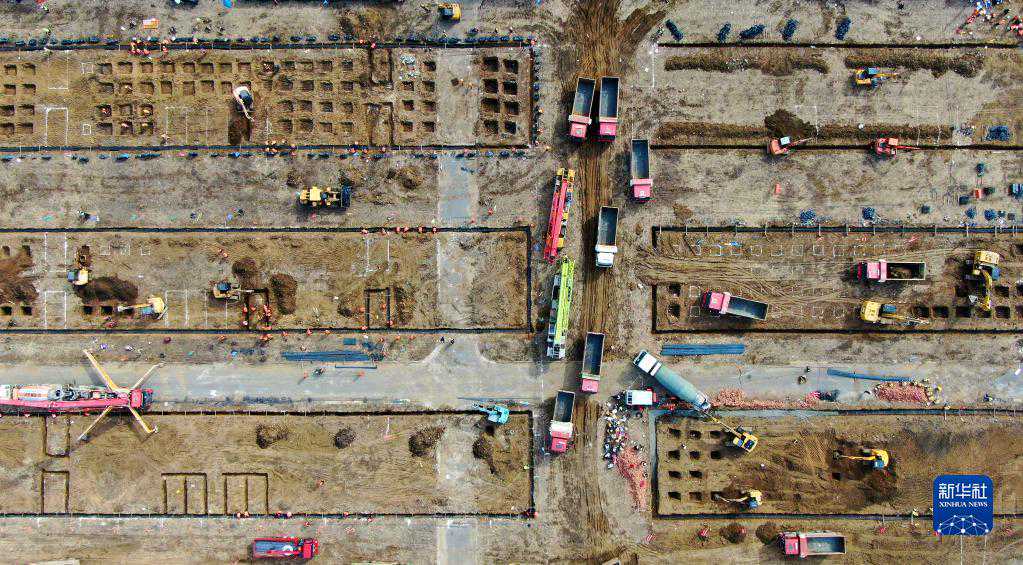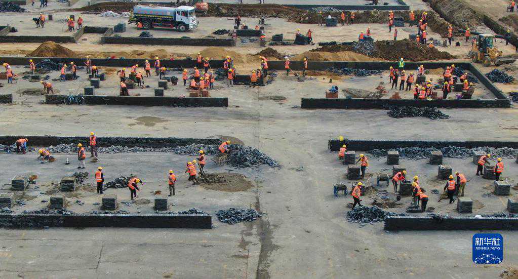 3月22日,在沈阳国际展览中心,各施工单位加紧建设健康驿站(无人机照片)。沈阳市积极应对严峻复杂的疫情形势,按照市防控指挥部总体工作部署,从3月20日晚开始,在沈阳国际展览中心建设方舱医院应急工程和健康驿站工程,提前准备必要的临时救治场所。多家施工单位紧密配合,倾力打造高质量临时救治工程,助力沈阳打赢抗疫保卫战。新华社记者杨青摄