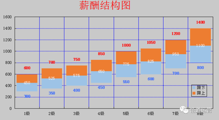 薪酬纵向架构是指薪酬分为多少层级,层级之间的关系如何。主要有三个可监测的变量:幅宽、级差和重叠度。
