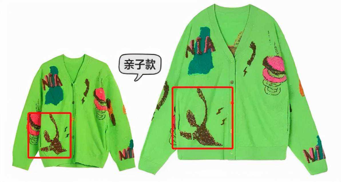 今年非常抢手的亲子毛衣,有网友说自己拜托柜姐登记、排队,足足等了一个月才买到,上面也有一些意思不明的图案: