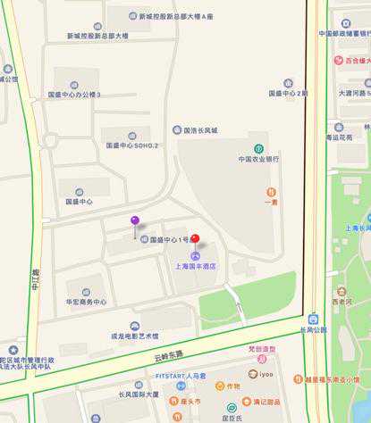 (红色标签为上海国丰酒店,紫色标签为上海协信莎玛长风服务式公寓)