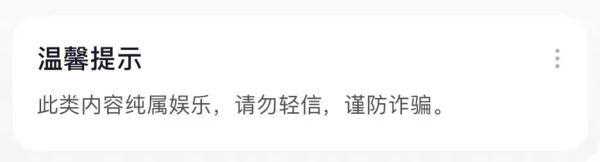 调查人员在直播平台以“算命”为关键词进行搜索时,会出现一个温馨提示:此类内容纯属娱乐,请勿相信,谨防诈骗。
