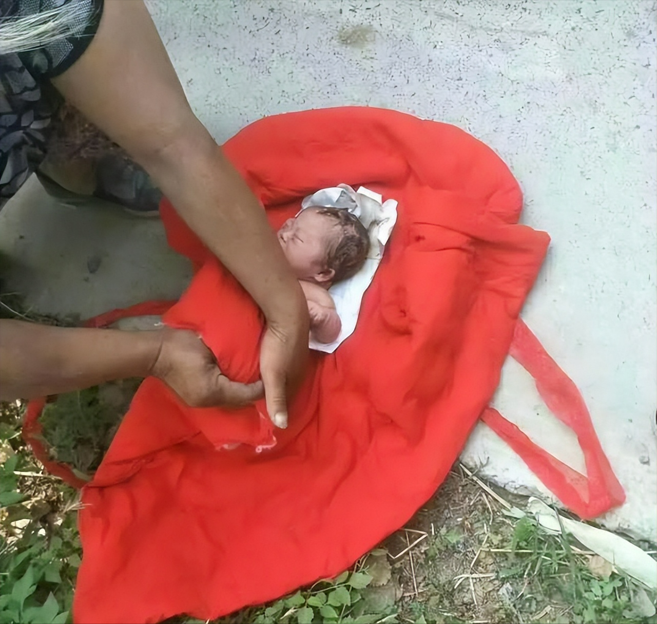 果不其然,在缀满露珠的青草地里,躺着一个用红色被面包裹的婴儿,此时婴儿的哭声已经渐渐微弱,那婴儿也是断断续续似乎快要被冻僵了。