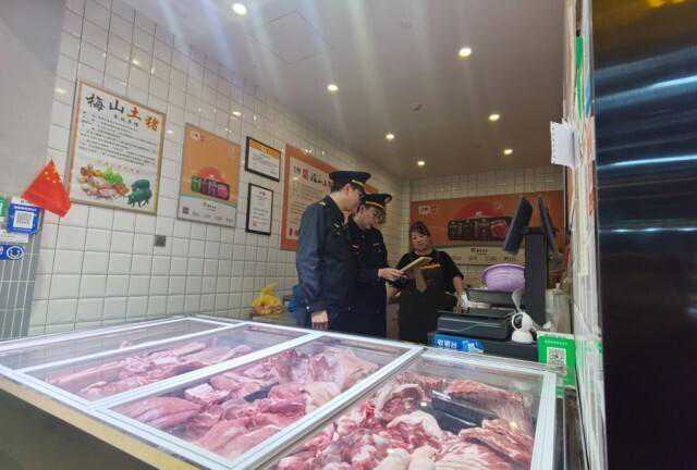 闵行区市场监管局工作人员上门指导提醒商户及时更换有违规风险的“生鲜灯”。