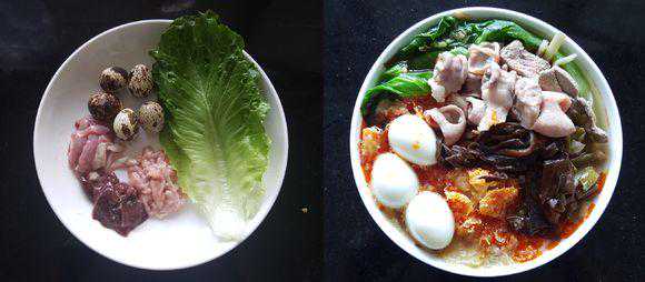 猪肝大肠螺蛳粉。加上煮粉常用的生料,吃起来满满都是满足。螺蛳粉重口味,很多人觉得太辣,里面的红油包,大家可以少加一些,喜欢吃煮粉的朋友,这个绝对是不错的搭配。只有你想不到,没有做不到的搭配。