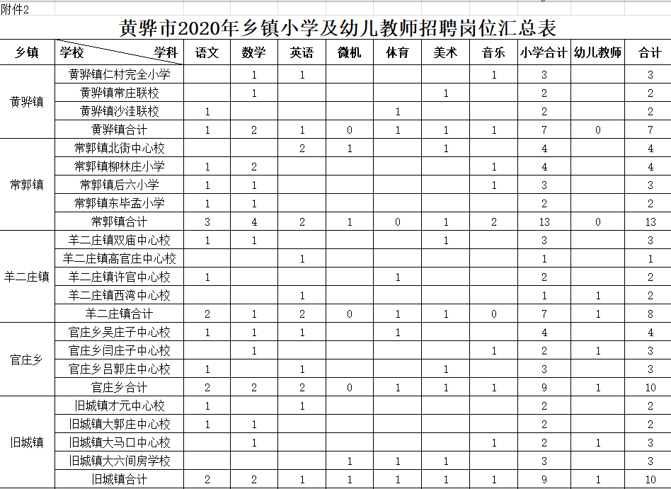 附件2:黄骅市2020年乡镇教师招聘岗位汇总表