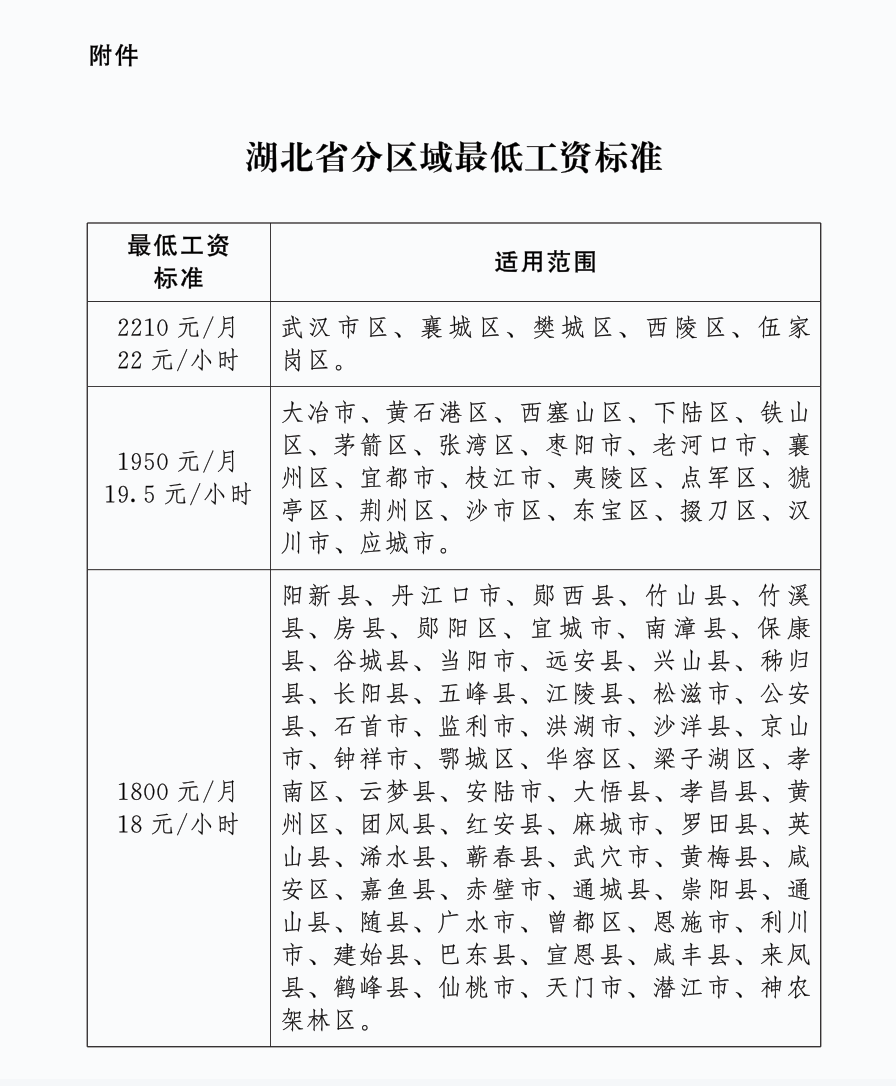 1月25日,湖北省人民政府发布《省人民政府办公厅关于调整全省最低工资标准的通知》。该通知自2024年2月1日起正式执行。