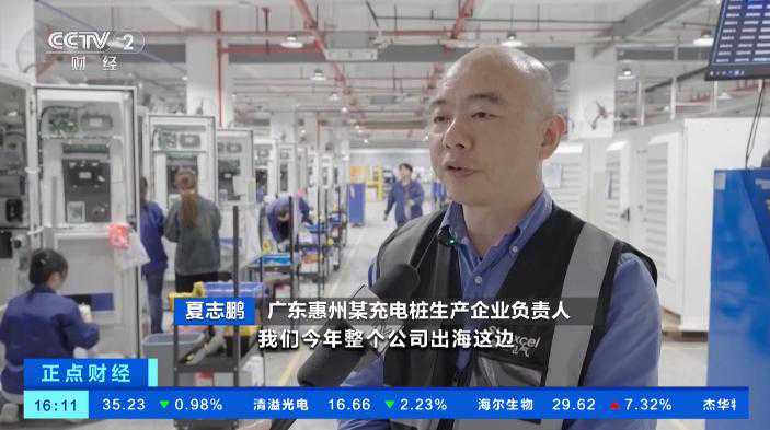 广东惠州某充电桩生产企业负责人夏志鹏:我们今年出海充电桩的业务预算比去年增长300%。