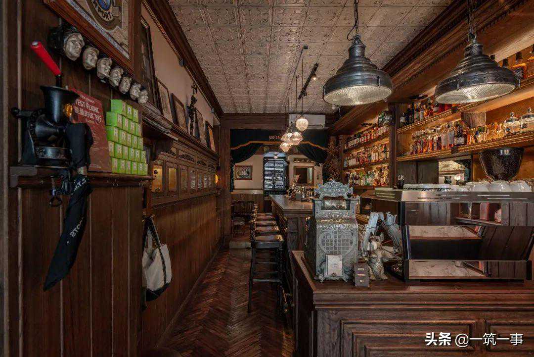 纵向延伸的吧台,使顾客能与咖啡师、调酒师近距离交流,颇有种穿越到上世纪美国小酒吧的感觉。