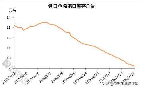据了解,截止到2020年7月21日,港口库存为9.23万吨,黄埔4.24万吨,上海2.43万吨,天津0.1万吨,大连0.52万吨,其他0.4万吨。较上周同期下跌5.60%。虽然秘鲁捕鱼顺利,配额可预期完成,但其鱼粉预售进度快,加之国内港口库存低位,货源供应十分紧张,预计短期鱼粉价格难有较大变化。