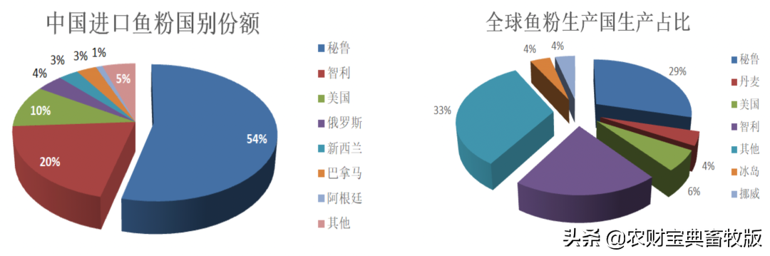 从全球鱼粉生产国看,主要产自秘鲁、智利、冰岛、丹麦、美国、挪威等。2018年世界鱼粉总产量580万吨,其中秘鲁总产量近1/3。我国每年从秘鲁、智利进口优质鱼粉约在100万吨左右,年进口总量普遍在140万吨。2019年,受中美贸易及非瘟疫情影响,中国自秘鲁进口鱼粉仅77万吨,占鱼粉进口总量54%。