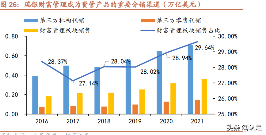 提供贷款服务,满足客户多元需求。瑞银集团注重营销全权委托类产品。全权委托类产品指的是客户全权委托瑞银代客户进行投资。对于客户来说,全权委托产品更加省时省事,无需自己挑选产品,也无需参与交易流程,客户体验感更好。近几年,全权委托类产品规模占客户投资资产的比例逐步提升。此外,瑞银还向财富管理客户提供贷款服务,21年末全球财富管理板块为客户提供的贷款规模为2341亿美元,其中,美洲地区贷款渗透率(loanpenetration)相对较低,21年末仅5%,而同期瑞士地区为15.3%。