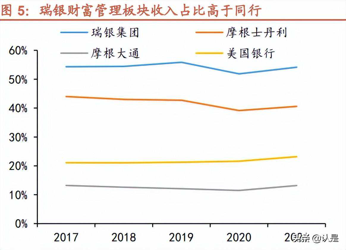 净息差平稳略降。整体来看,近5年瑞银集团的净息差呈现平稳略降的态势。与同业相比,瑞银集团的净息差较低,但差距逐渐缩小。2020年受疫情影响,各银行净息差均有一定的下滑,摩根大通/美国/富国/花旗银行分别较2019年下滑48/53/46/49bp,而瑞银集团仅下滑8bp,息差较为平稳。2021年瑞银集团净息差为1.40%,较2020年略降2BP。