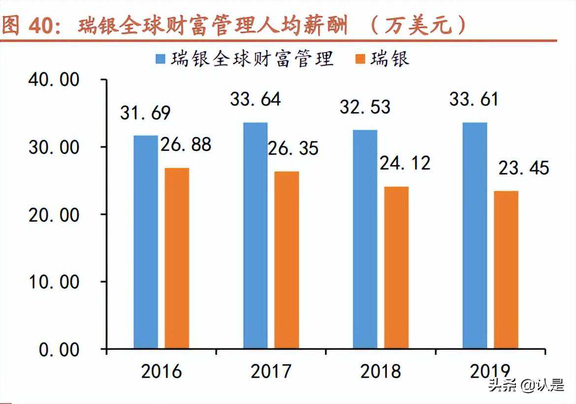 投顾薪酬水平高,吸引优秀人才。从人均薪酬来看,瑞银全球财富管理板块的人均薪酬水平高于瑞银全行。2019年,瑞银全球财富管理人均薪酬为33.61万美元,为全行平均的1.43倍。从绩效薪资来看,2021年,投资顾问的人均绩效薪资为84.79万美元,为其他员工人均绩效薪资的12.45倍,投资顾问的绩效薪资远高于其他员工的人均绩效薪资。