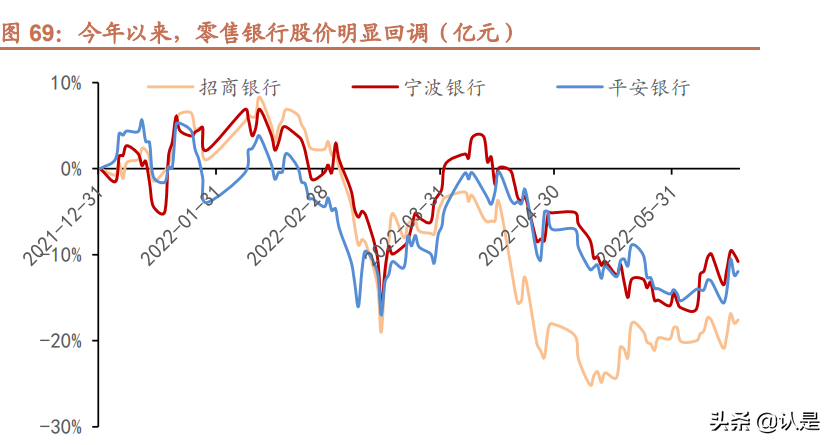 零售银行是银行业发展的大方向,零售银行业务主要是信贷与财富管理两大块。由于4月初以来疫情多发,经济明显承压,股市低迷,财富管理收入受影响明显,个贷需求低迷,这使得零售银行估值溢价基本消失。不过,展望未来,零售银行特别是财富管理仍有较大的发展空间,仍然为银行股的长逻辑。随着地产明显放松,后续地产销售有望迎来拐点,驱动个贷需求好转,零售银行估值或已见底。
