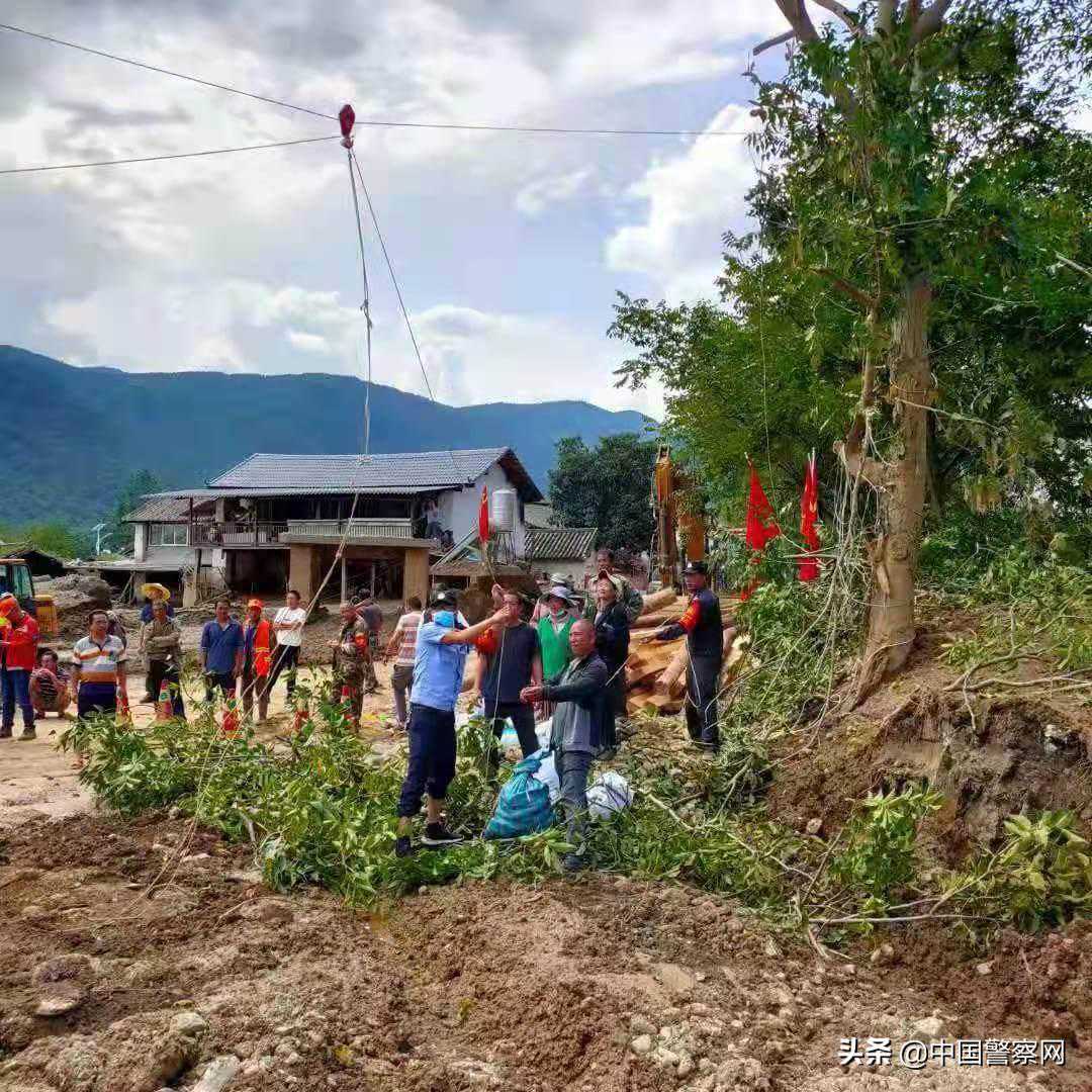 由于道路被冲断,救援人员及物资无法进入乔后镇龙门涧组,村组178户受灾群众的物资需求成了救援民警最担心的问题。就在大家一筹莫展时,有人想到,采取溜索滑降配送物资。洱源县公安局副局长张四雄带领大家齐心协力,稳拉溜索绳索,救援民警全员上阵,所有物资全部送到群众手中。一直忙到晚上9点多,连续工作了10多个小时的他们满脸倦容。但在他们看来。在群众最需要的时候挺身而出,就是党员的职责使命。