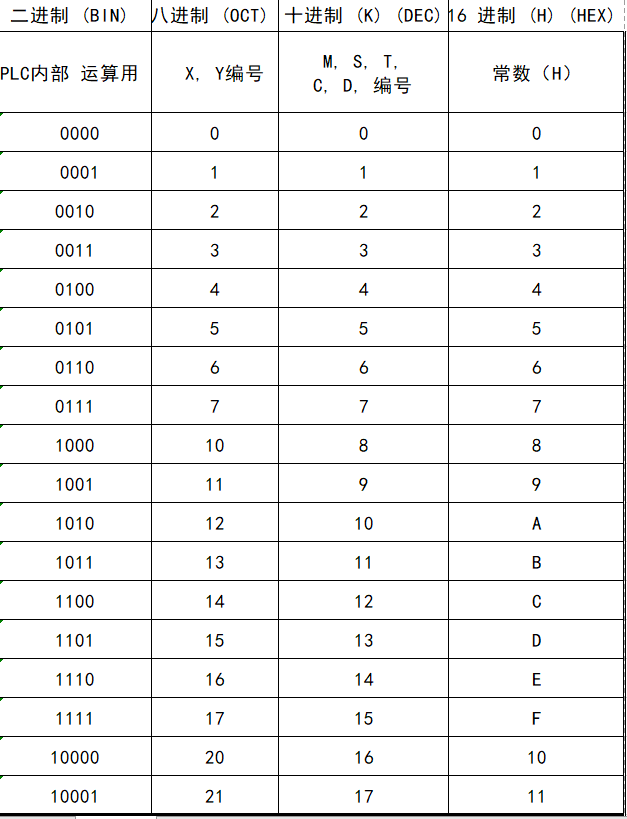 常数K:十进制数值在PLC系统中,通常会在数值前面冠以一“K”字表示,例:K100,表示为十进制,其数值大小为256。