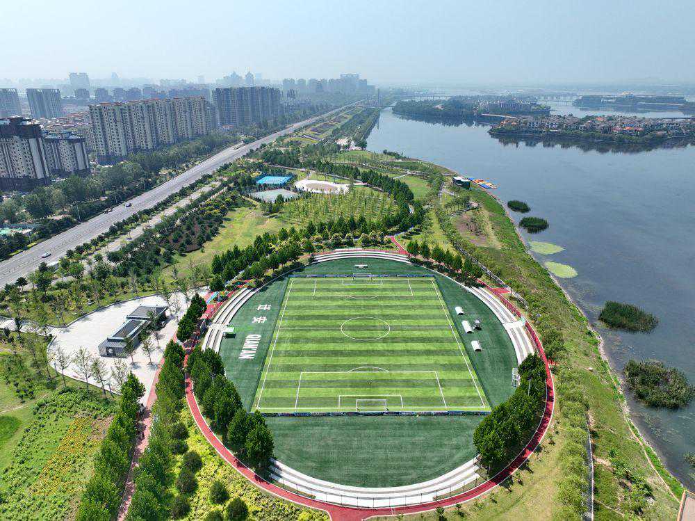 河北省迁安市滦河沿岸风光(2023年7月7日摄,无人机照片)。新华社记者牟宇摄