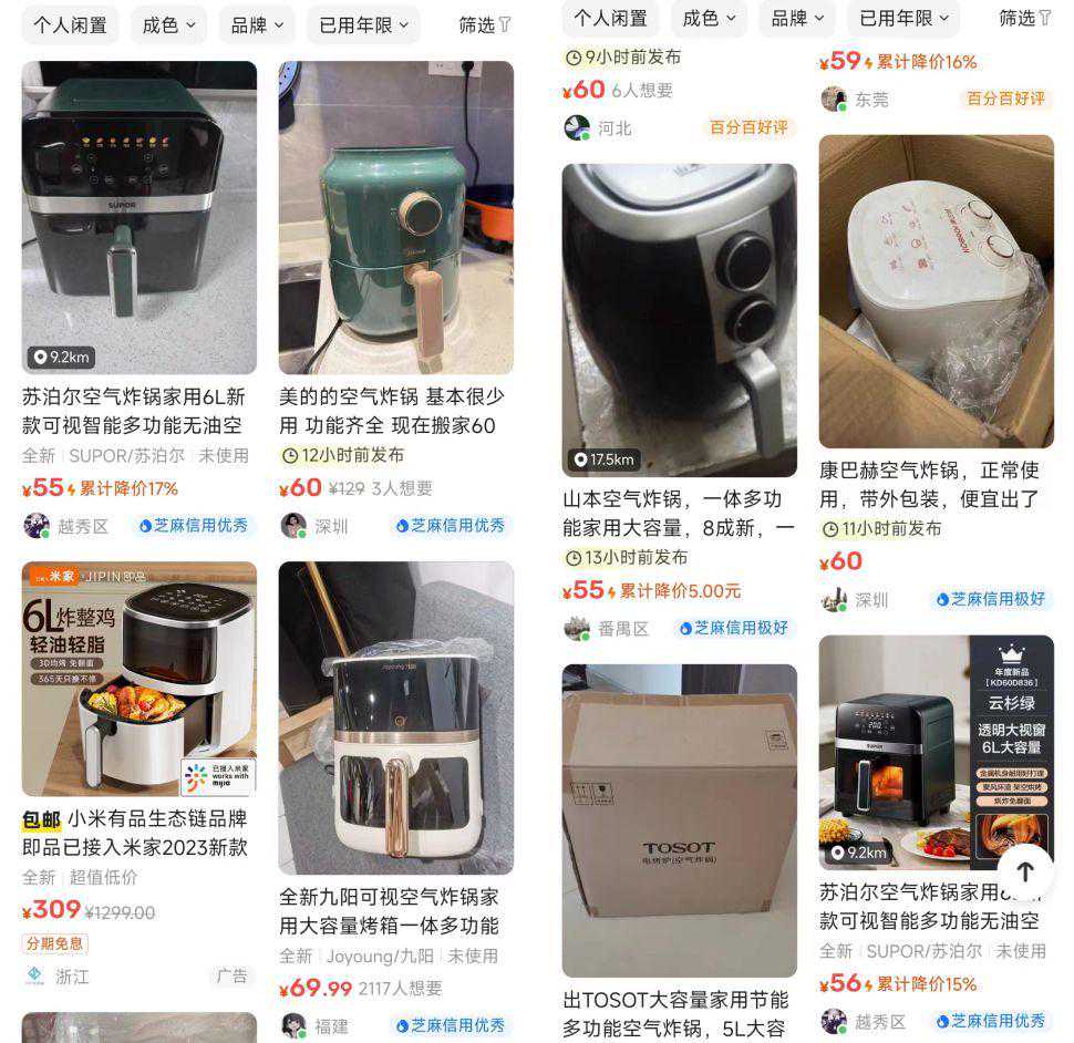 事实上,按照二手平台闲鱼两年前出示的报告来看,空气炸锅几乎是所有品类小家电中闲置率最高的一种,理由也很简单。