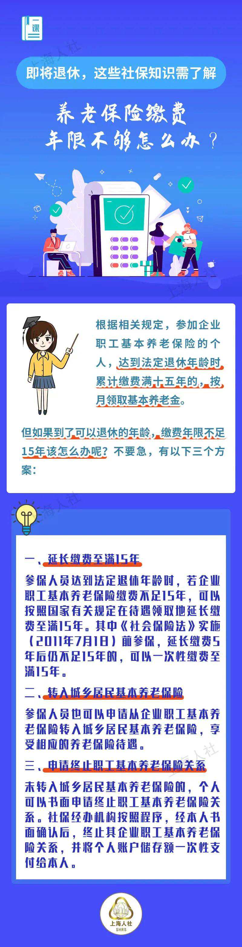 养老保险缴费年限不够怎么办?