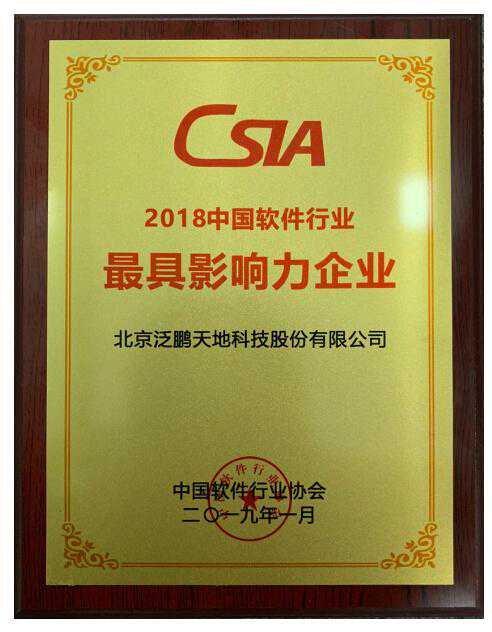 1月18日,在工业和信息化部指导下,由中国软件行业协会举办的“2019中国软件产业年会”在北京国家会议中心隆重举行。会议以“软件定义的时代”为主题,邀请了产业主管部门领导、两院院士、软件领域知名专家、软件领域领军企业负责人以及相关行业组织和机构代表、媒体记者等1000余人到场,聚焦软件在人工智能、大数据、工业互联网、智慧城市等建设中的核心引领。在当晚的“2019中国软件之夜”颁奖盛典中,泛鹏天地凭借十年砥砺的积累,荣获“2018年中国软件行业最具影响力企业“奖项。