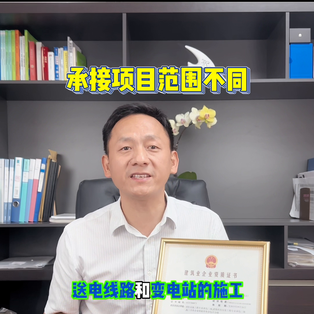 ·第一,上面这两个资质颁发机构是不一样的。电力总包是由建设部颁发的,而三承证是由能源局颁发的。