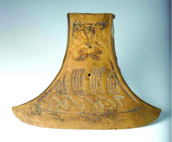 战国羽人竞渡纹铜钺,宁波博物馆藏