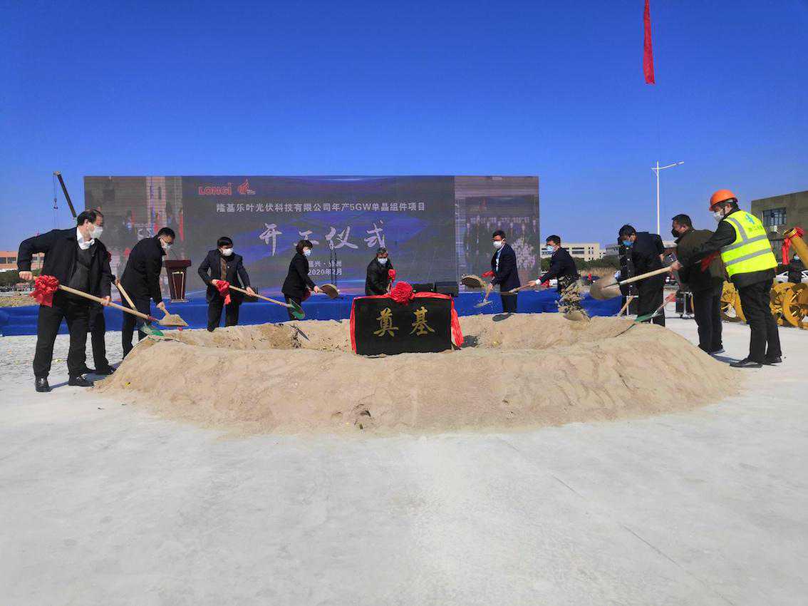 2月20日,隆基乐叶光伏科技有限公司年产5GW单晶组件项目云开工仪式在秀洲国家高新区举行,这也是2020年春节后秀洲区首个开工项目。
