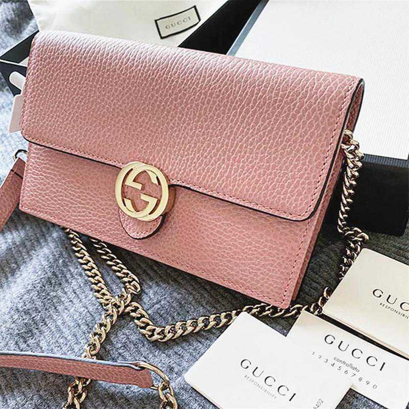 TOP4:【七夕情人节送礼物·专柜款礼盒·可代写贺卡】GUCCI古驰女包woc系列双G扣荔枝纹牛皮链条包翻盖单肩斜挎包