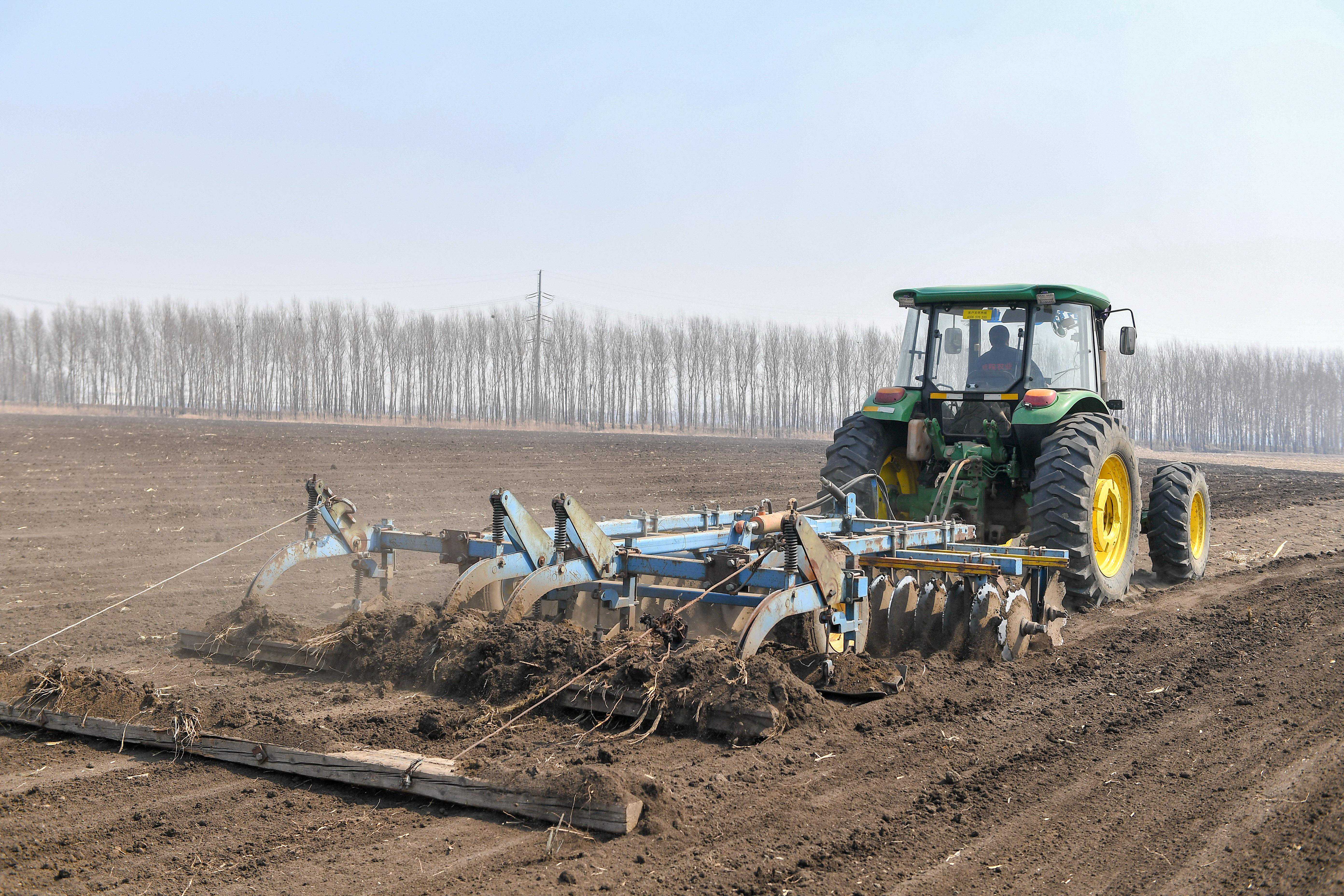4月2日,在吉林省公主岭市范家屯镇乾程农民专业合作社,农民驾驶农机整理耕地。新华社记者张楠摄