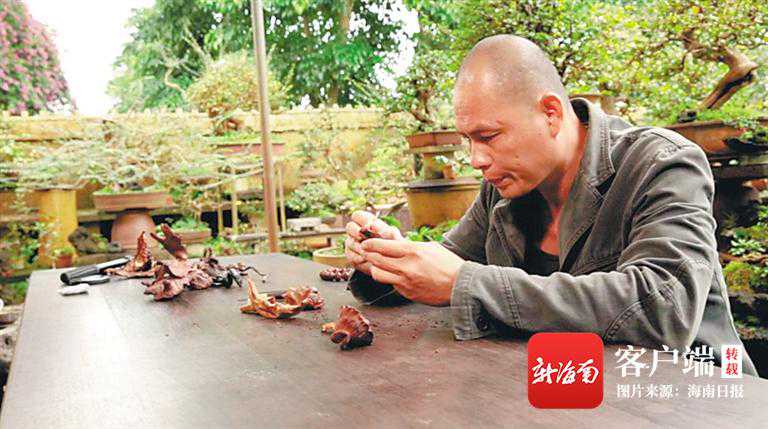 海南还有一位黄花梨根雕匠人名叫彭锦平,养花品茗,彭锦平的生活方式很纯粹。