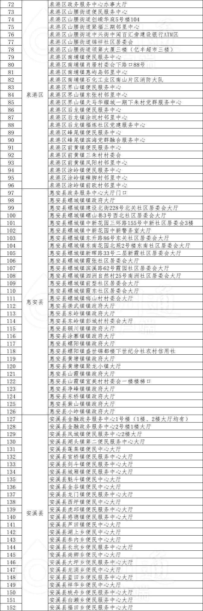 目前,泉州市已在各地24小时自助行政服务区及市、县(市、区)行政服务中心、各乡镇(街道)便民服务中心、村(社区)便民服务站、“党建+”邻里中心等场所布设350台政务服务自助一体机,实现市、县(市、区)、乡镇(街道)布设政务服务自助一体机全覆盖,村(社区)基本全覆盖,市民可就近前往自助办理。