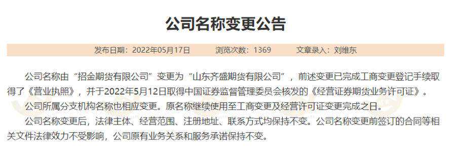 招金期货更名齐盛期货,淄博金融版图再添一员。